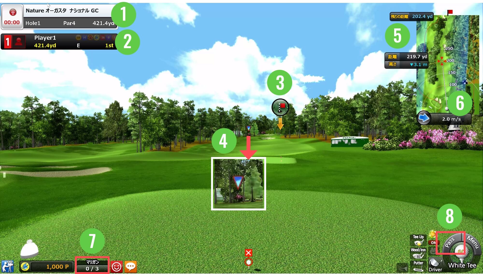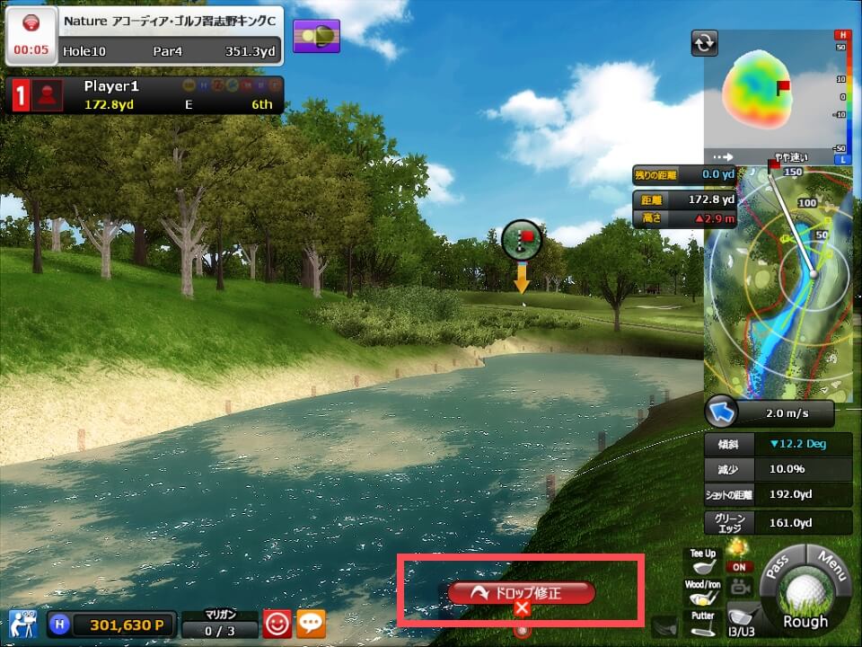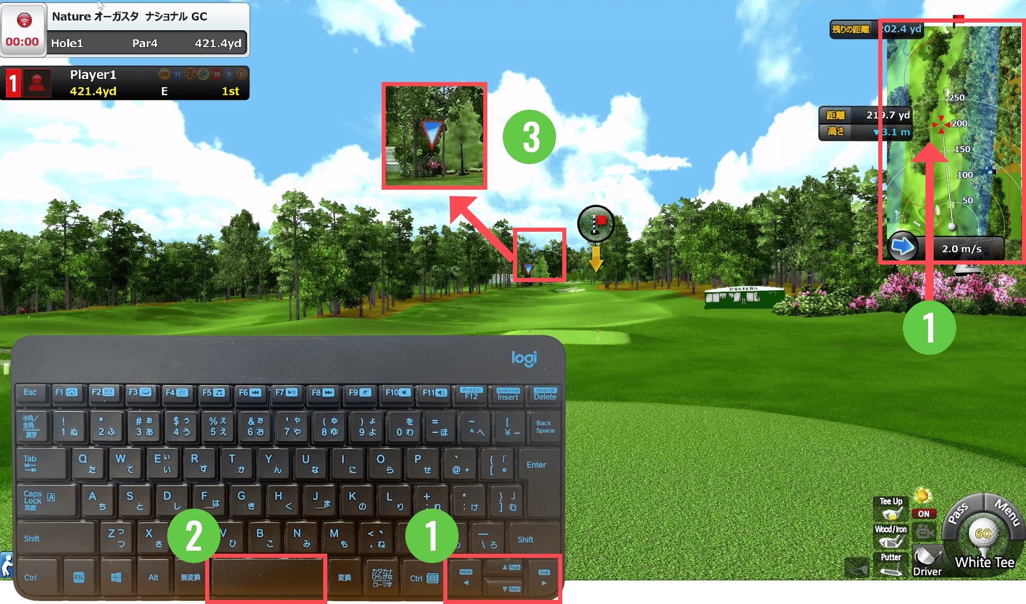 ①打つ方向(目標位置)はキーボードの矢印キーで変更可